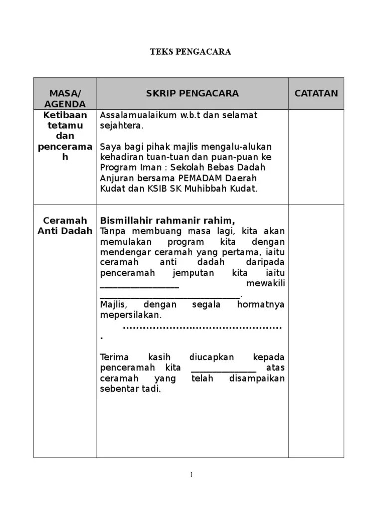 Teks pengacara majlis ceramah nuzul quran peringkatjabatan pendidikan wilayah persekutuan putrajaya tahun 2021masaqueann9:00 pagiucapan . Teks pengacara majlis untuk ceramah program kesedaran & pencegahan malaria sempena sambutan hari malaria sedunia peringkat negeri pahang. Contoh teks ucapan sebagai pengerusi majlis ceramah agama peringkat organisasi. Allah jua membalas jasa baik tuan puan atas .